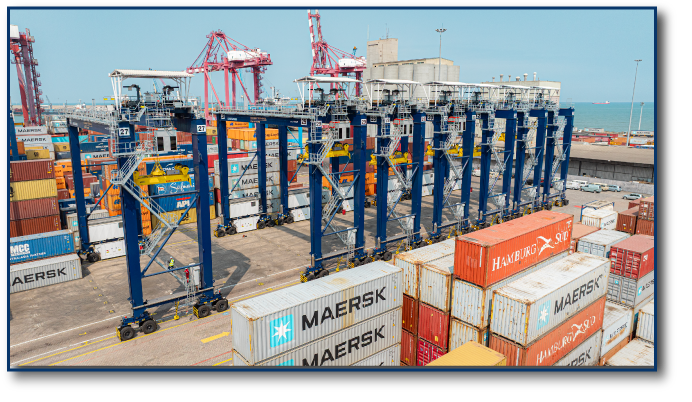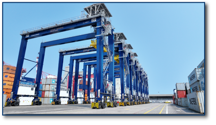 RTG. Ces équipements mis en service le 31 juillet 2025, ont une capacité de levage de 40 tonnes,